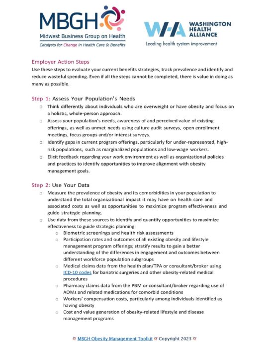 Thank you to the Midwest Business Group on Health for access to an Obesity Management Toolkit, full of employer-focused resources from addressing obesity through employee benefits to business cases and economics.
